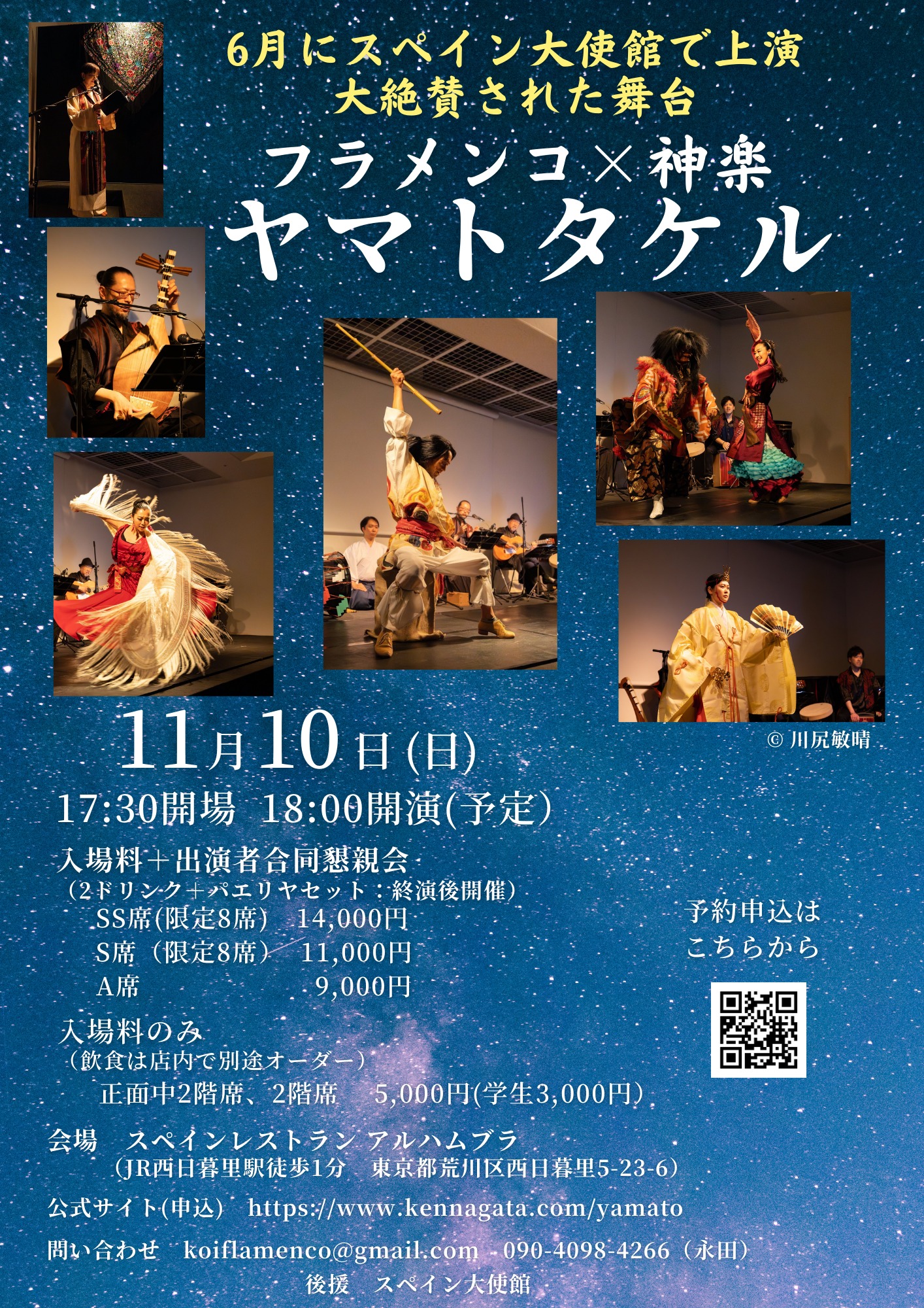 Aプログラム 世代を超えて~generación(ヘネラシオン) 『リトモス』 振付:アルベルト・ロルカ 『ハカランダ』 振付:ルベン・オルモ(11/20,21夜) 『パストレラ』 振付:アントニオ・ルス(11/21昼) 『サパテアード』 振付:アントニオ・ルイス・ソレール 『ボレロ』 振付:ホセ・グラネーロ 『グリート』 振付:アントニオ・カナーレス Bプログラム 祈り~invocación(インボカシオン) 『インボカシオン・ボレーラ』 振付:ルベン・オルモ 『ハウレーニャ』 振付:ルベン・オルモ 『イベリア賛歌』 振付:アントニオ・ナハーロ 『フラメンコ組曲~マリオ・マジャに捧ぐ』 振付:マリオ・マジャミラグロス・メンヒバル,アスンシオン•ルエダ“ラ・トナ”,マノロ・マリン,イサベル•バジョン、ラファエラ・カラスコ