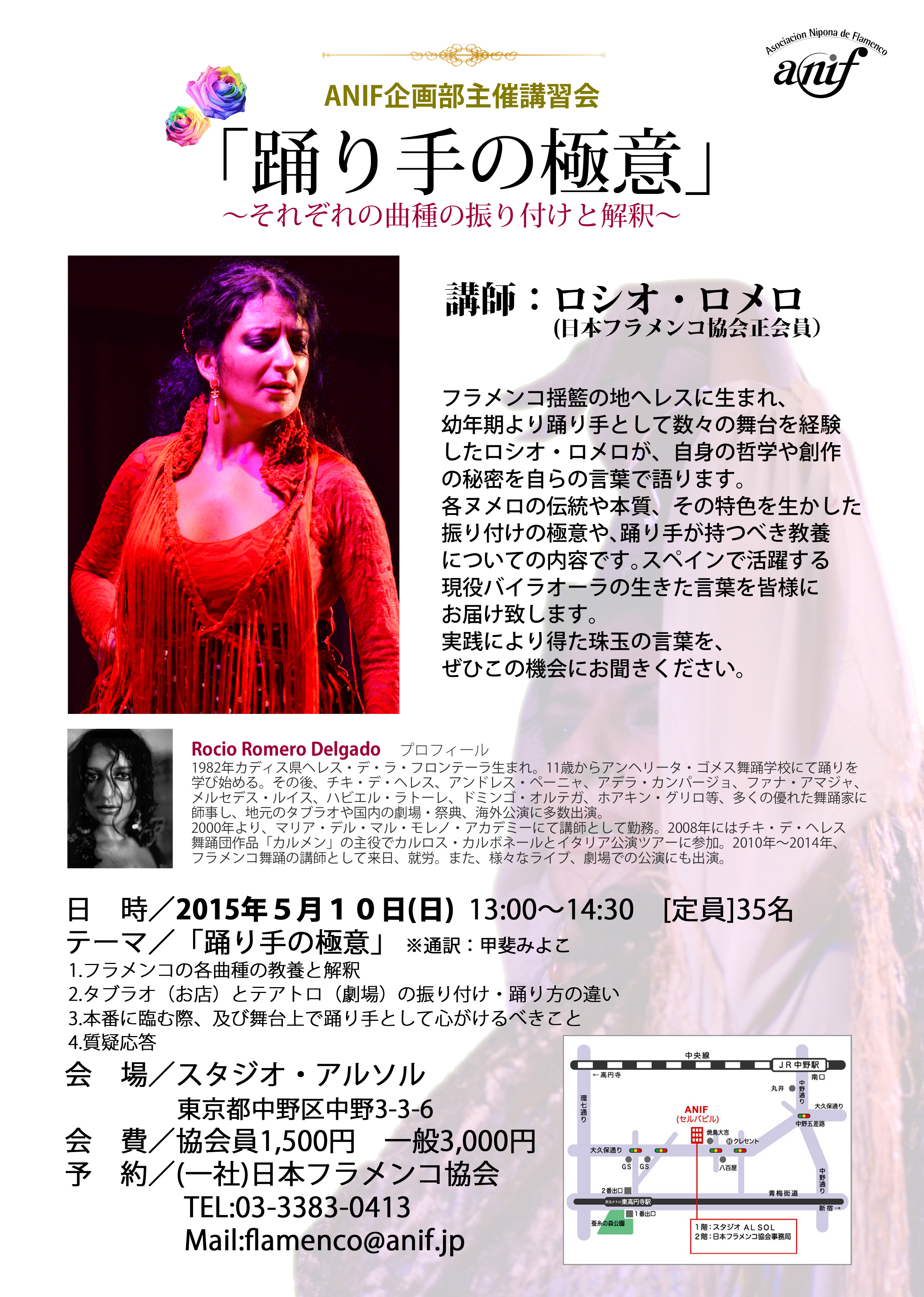 講師は、スペイン・日本の両国で活躍中の人気バイラオーラ「ロシオ・ロメロ」。